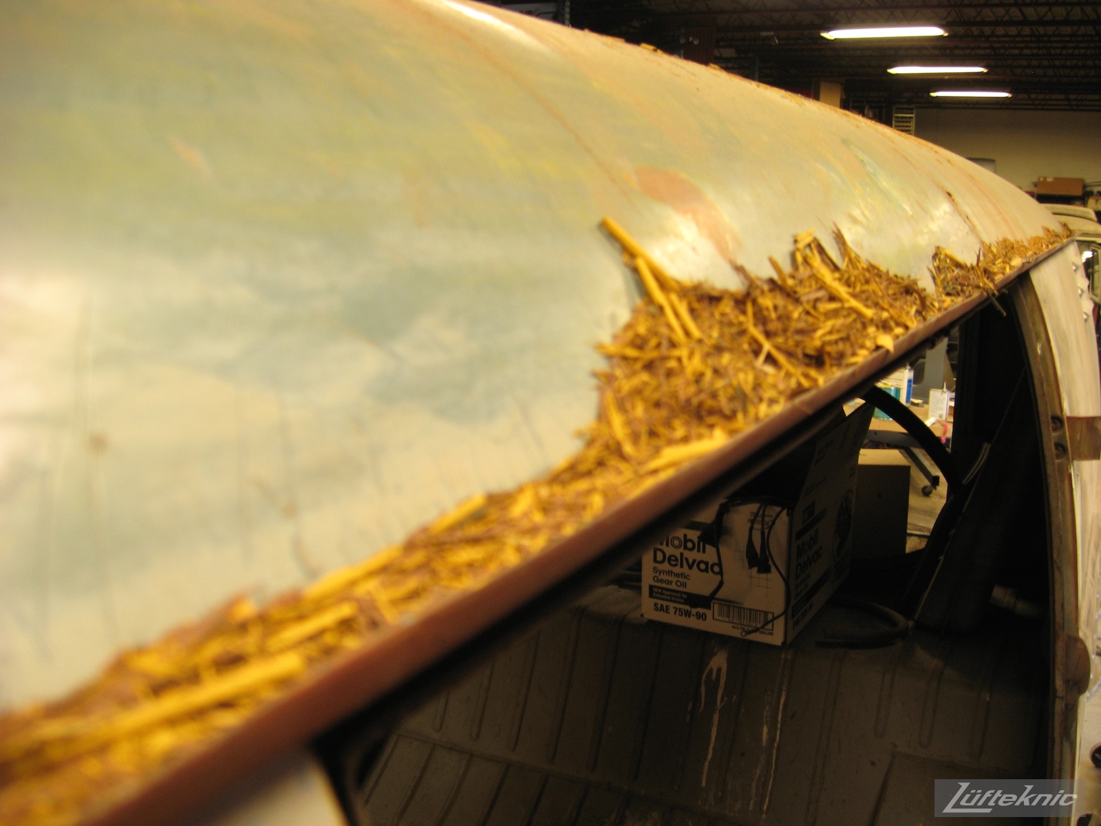 The old paint just sluffed off the roof without much effort., Technical Details Camera: Canon PowerShot A560 Taken: August 6, 2009 Focal length: 5mm Aperture: f/2 Exposure: 1/20 second ISO: 100